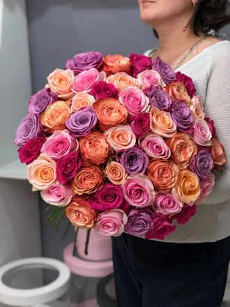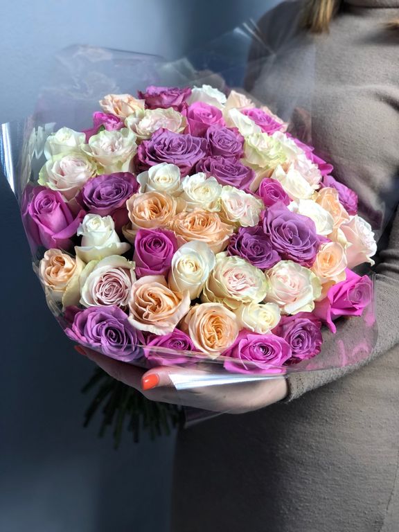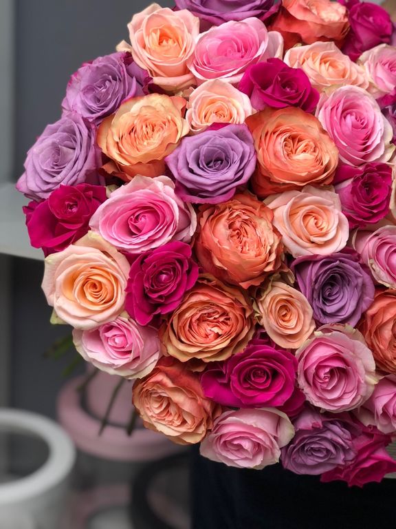 Миксы получаются каждый раз уникальными, флорист подберет красивое сочетание в зависимости от наличия и выбранной вами цветовой гаммы.