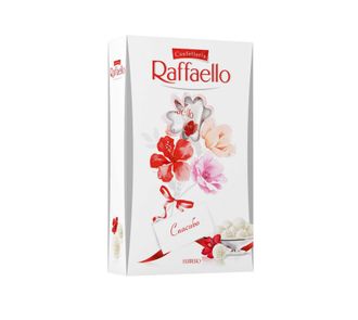 Конфеты Raffaello с цельным миндальным орехом в кокосовой обсыпке. Уникальный рецепт Raffaello - это гармония ингредиентов, отобранных с особой заботой: сладкий белый миндаль и отборный кокосовый орех с тропических островов, придают непередаваемую нежность вкусу. Raffaello - истинное удовольствие.